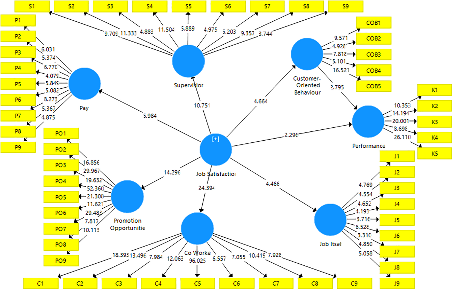Job Satisfaction → Customer-Oriented Behavior | 0.674 | 4.664 | 0.000 | Supported |