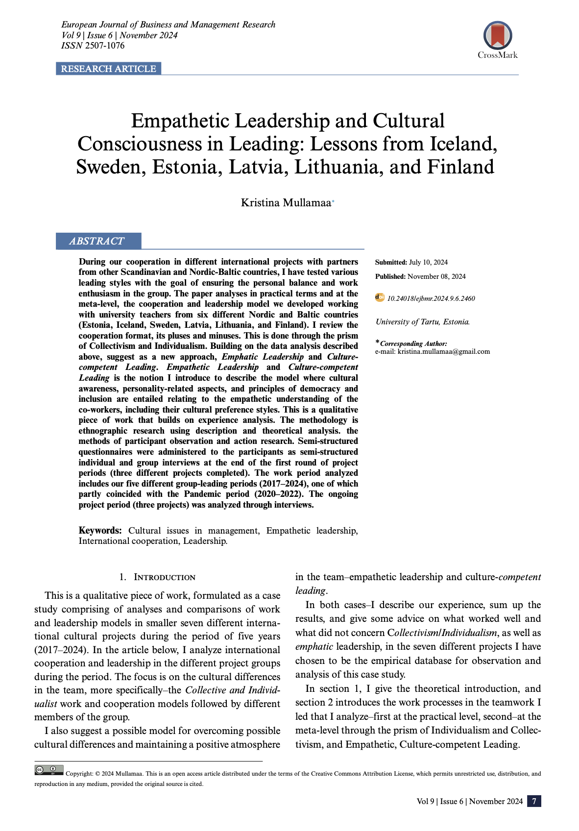 Empathetic Leadership and Cultural Consciousness in Leading: Lessons from Iceland, Sweden, Estonia, Latvia, Lithuania, and Finland