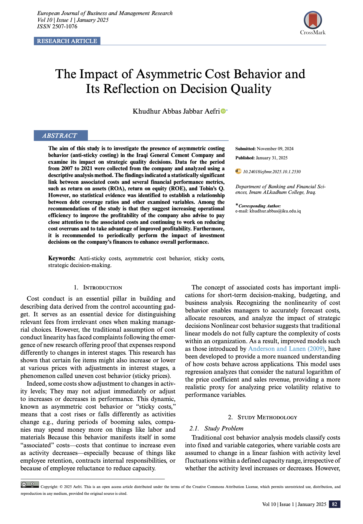 The Impact of Asymmetric Cost Behavior and Its Reflection on Decision Quality